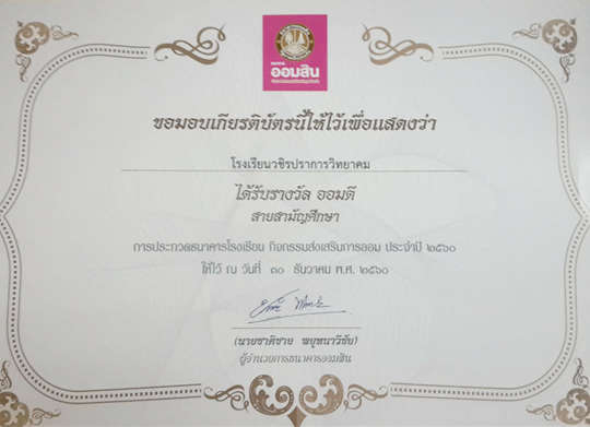 รางวัลออมดี สายสามัญศึกษา การประกวดธนาคารโรงเรียน